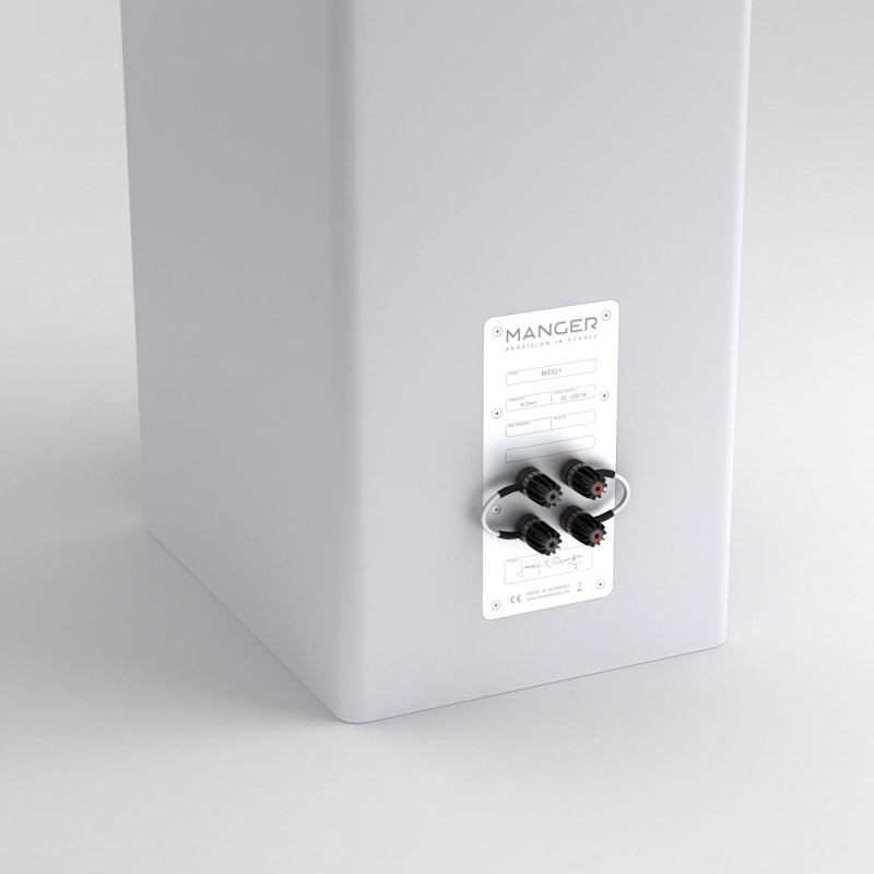 The uncompromisingly solid cabinet of the Manger z1 offers the ideal prerequisites for faithful reproduction. Rounded edges improve the radiation behavior, struts inside and the particularly thick front reduce possible housing vibrations to a minimum. The loudspeaker connections are easily accessible and equipped with WBT nextgen™ PlasmaProtect™ speaker sockets. They are among the best that the world market has to offer.